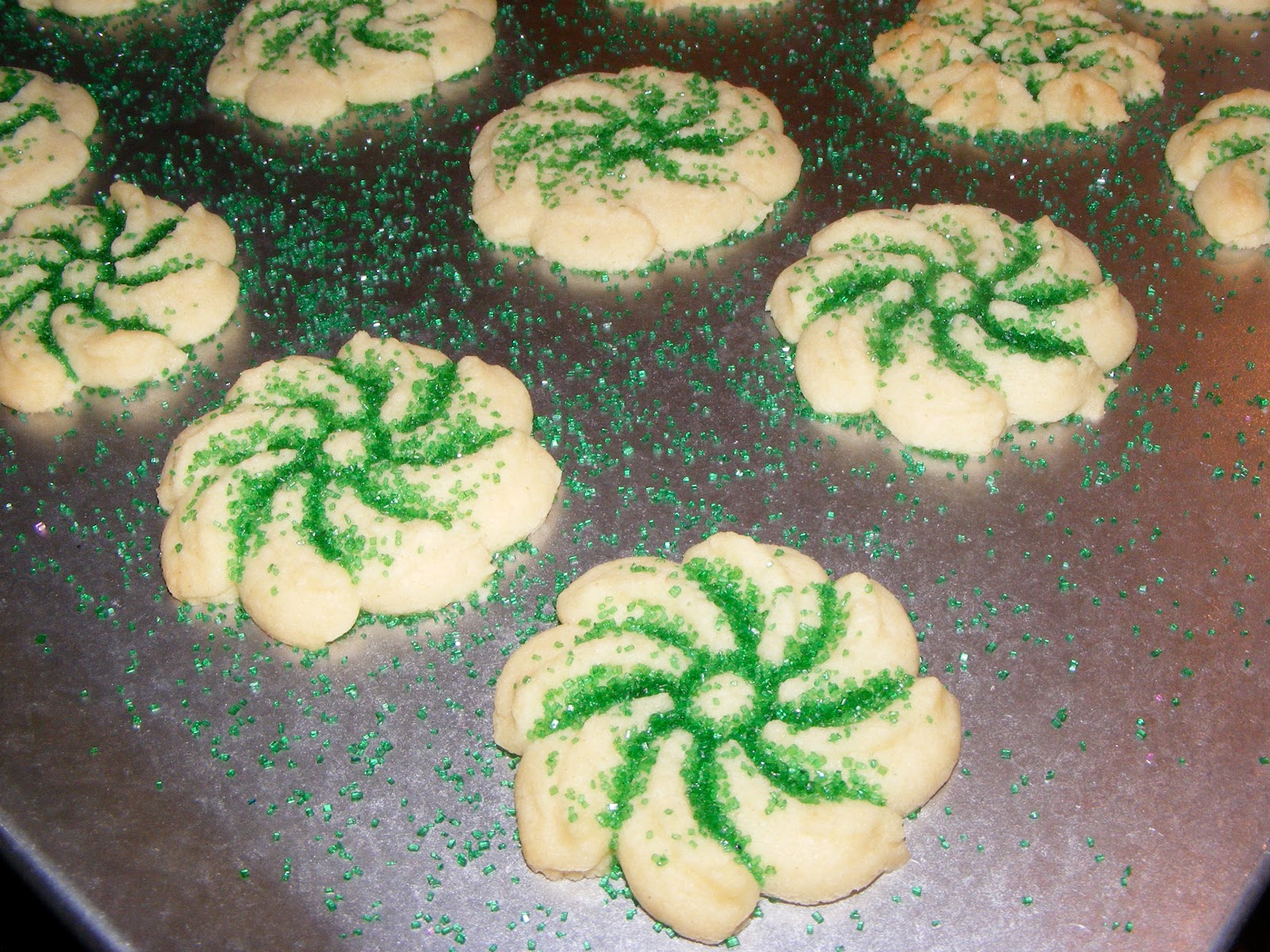 One of my childhood best friend's mother baked a different cookie every day of December. The Braithwaite's home smelled like Christmas and I still admire Mrs. B and her cookie making skills. I'm not much of a baker. Give me a boxed brownie mix and I'll doctor it up with flax seeds and pecans but that is the extent of my creative baking. When E. and I went to help clean out his grandmother's home in New Jersey we found this fabulous cookie press. I had to find a way to bake this month and use this traditional tool.